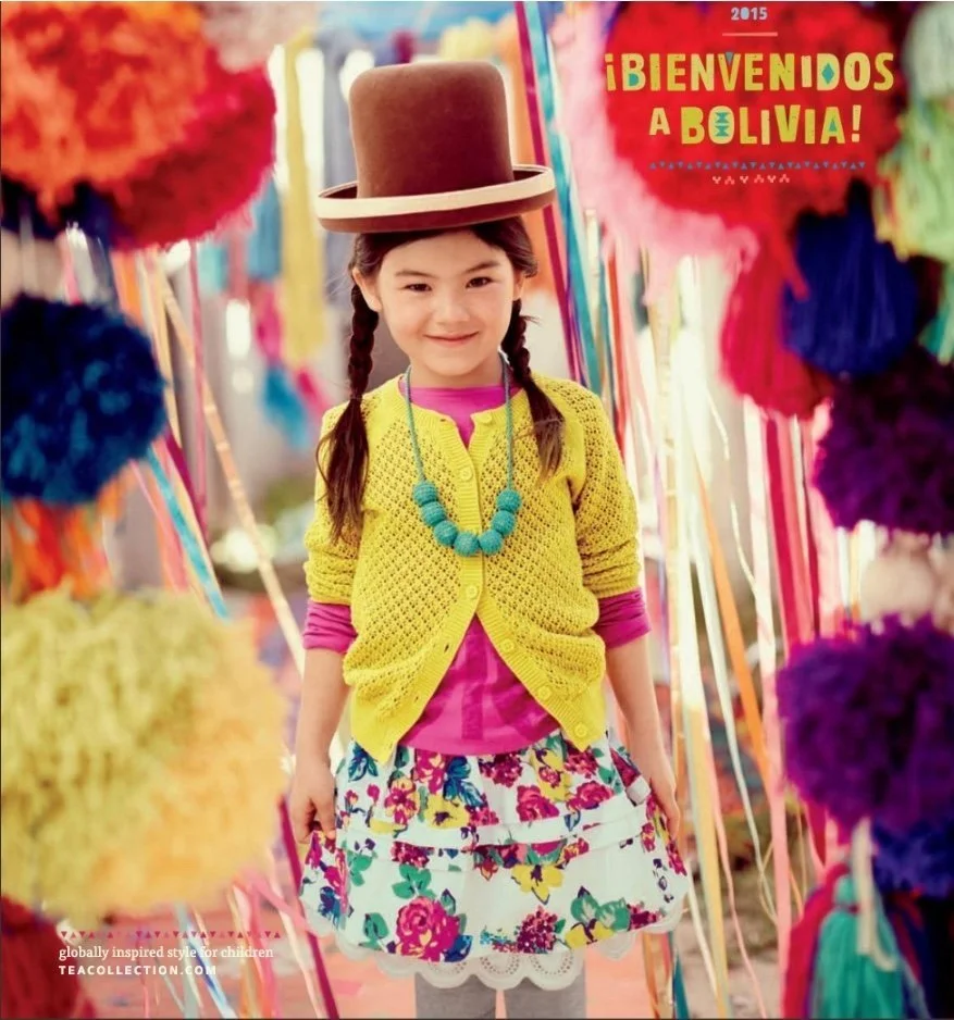I was fortunate to be part of the Design and Product Development team at Tea Collection. Part of the company's creative process involves to travel around the world to get inspired and absorb by the local culture. The Design team went shopping at local markets, then returned to our headquarters with new trends, distinctive textiles, and anything else that could serve as inspiration for the collection. Since the business relies heavily on prints and graphics, it was crucial to produce printed bottoms like the skirt from our Bolivia campaign below.