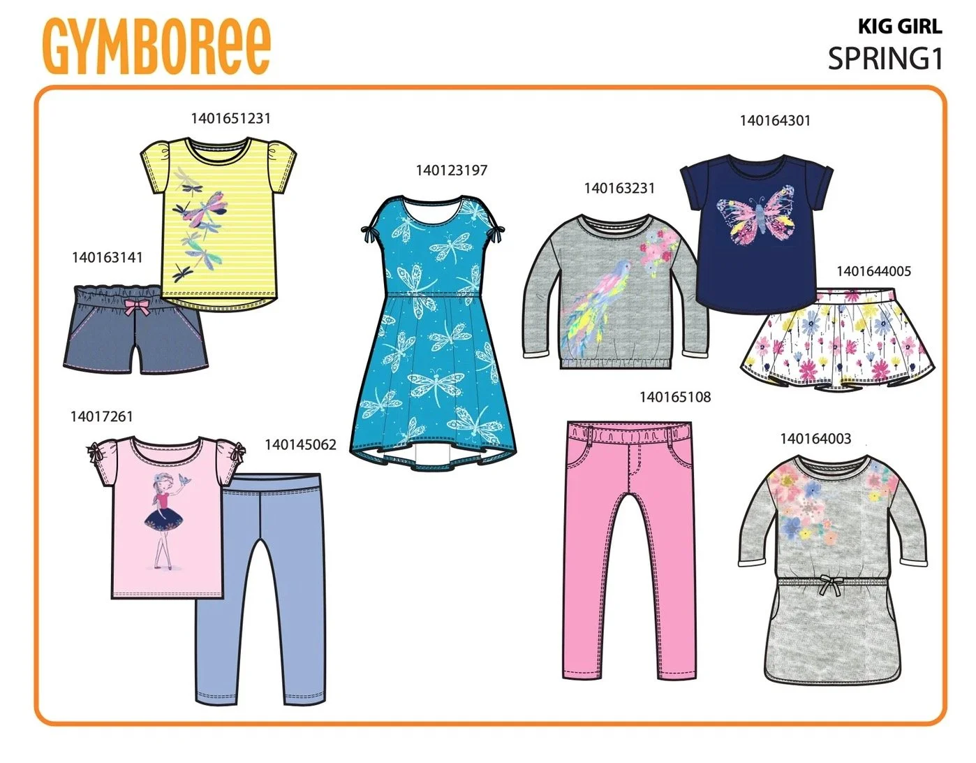 Above is a linesheet of Gymboree’s Spring Collection for Kid Girl category. Our inspiration for this collection was based of what sold in stores the previous year and we designed new updated versions of those old graphics. In this case, we noticed that the watercolored technique and butterflies were really popular in our last years shirts. In this case, I decided to work on the butterfly graphic below and add some fun sequins into the graphic to add some richness and tridimensional feel to the design itself. Pairing this graphic with our 2-way stripe in yellow cotton jersey was a way to give it some newness and make it more fun to wear.