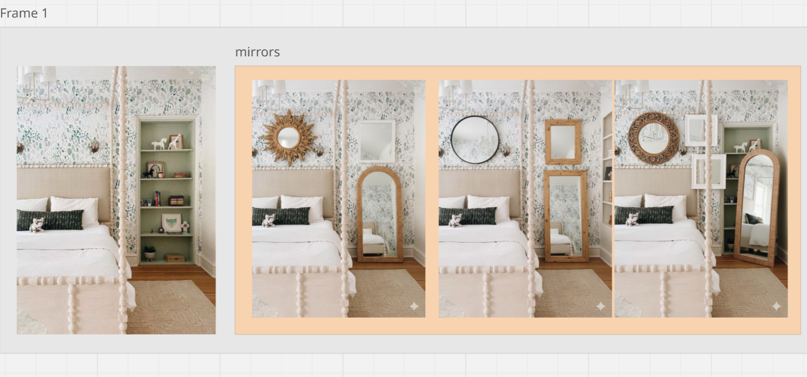 Materials like rattan were very popular and are in high demand so I decided to go in that direction. To add a whimsical touch I played with the idea of a preppy big bow for the door corners. (see further down in my final project)
